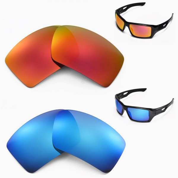 Walleva Ice Blue + Fire Red Polarized Replacement Lenses For Oakley Eyepatch 2 (OO9136 Series) Sunglasses